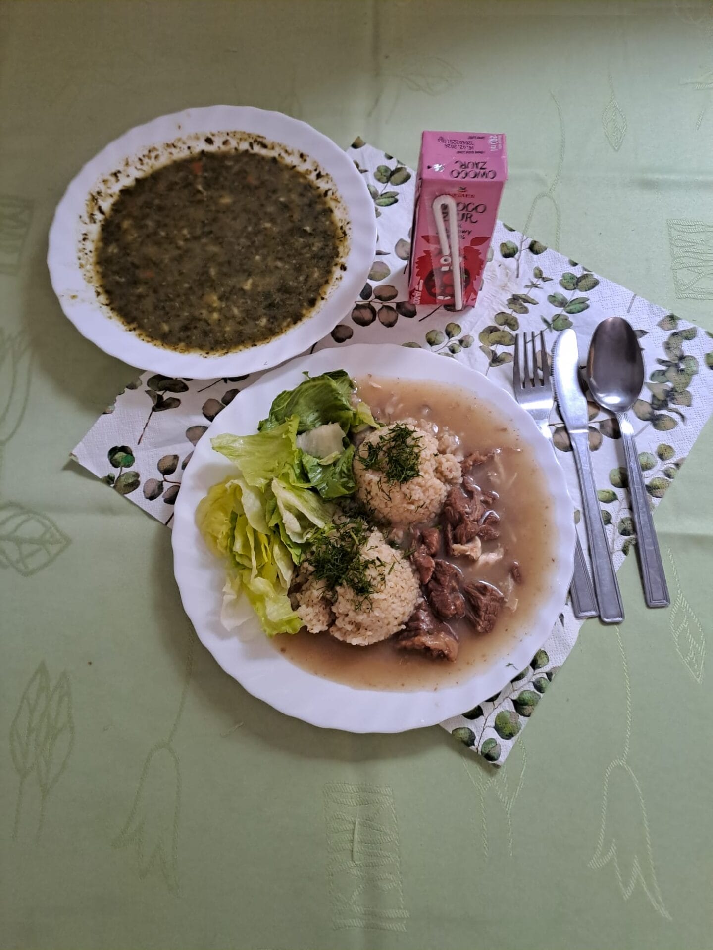 - zupa szpinakowa z lanym ciastem,